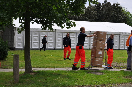 Der DRK-Kreisverband Minden kümmert sich bis zum 2. August um die Betreuung der Flüchtlinge. Danach übernimmt die Johanniter-Unfallhilfe aus Bad Oeynhausen diese Aufgabe. Das DRK hat in den vergangenen Tagen Decken und Kissen beschafft, Hygiene-Pakete organisiert, ein Zelt für die Registrierung aufgebaut und zahleiche freiwillige Helfer/innen akquiriert. 27 Bürgerinnen und Bürger sind am Samstag einem Aufruf gefolgt, als Helfer/innen in der Notunterkunft und bei der Essenausgabe aktiv zu werden. Mit so viel Resonanz hat Oliver Kreft, DRK-Kreisverbandsarzt, nicht gerechnet. Auch Kleider- und Sachspenden sind schon zahlreich beim DRK an der Kutenhauser Straße 4 eingetroffen. Geldspenden nimmt die Stadt Minden entgegen.