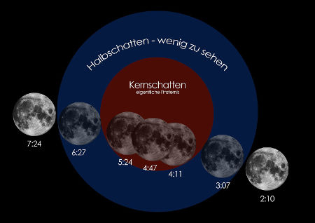 Grafik: Die einzelnen Phasen der Mondfinsternis; © LWL/Steinweg