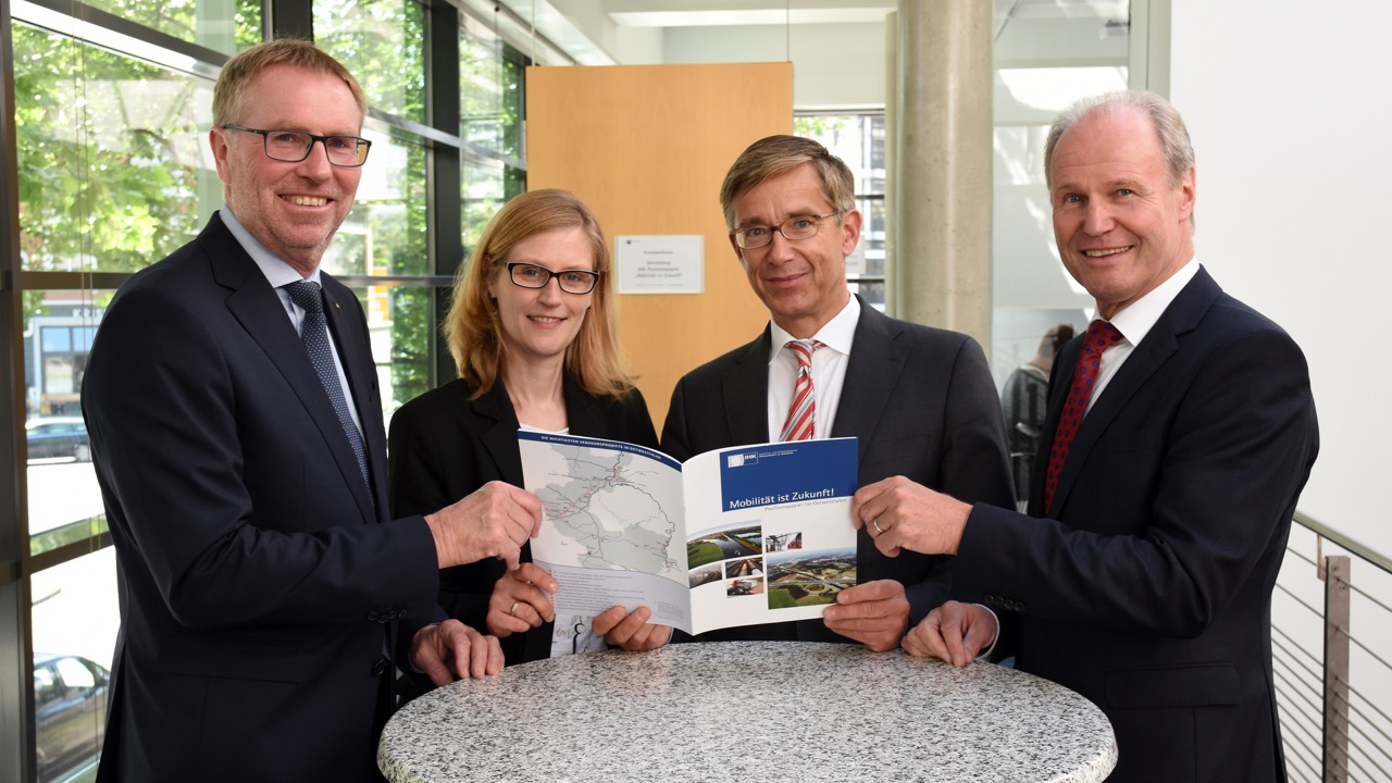 Präsentierten die Ergebnisse des IHK-Positionspapiers „Mobilität ist Zukunft!“: stv. IHK-Hauptgeschäftsführer Harald Grefe, IHK-Referatsleiterin Daniela Becker, Vorsitzender des IHK-Verkehrsausschusses Dr. Stefan Schwinning und IHK-Hauptgeschäftsführer Thomas Niehoff (v.l.)