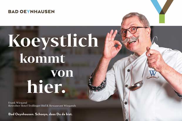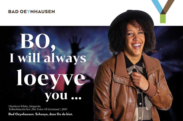 Die Kampagne ist für die Staatsbad GmbH der erste Auftritt im neuen Gewand. Seit August wird sie durch das markante „Y“ verkörpert. Es ist der Dreiklang der drei Leitwerte Gesundheit, Geborgenheit und Lebensqualität. Jeder der Arme steht für sich. Doch erst wenn sie verbunden sind, wird daraus ein Ganzes – Bad Oeynhausen.