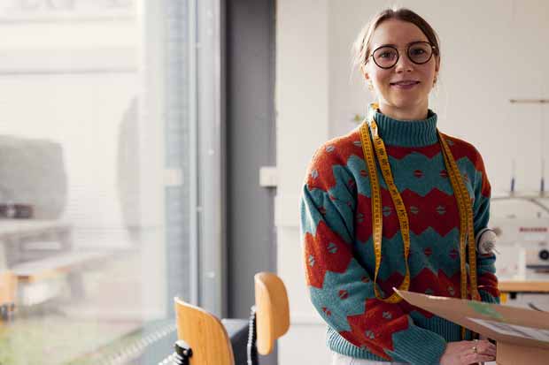 Die 22-jährige Modestudentin Marie Prochatzki hat im Wintersemester 2020/2021 ihren Bachelor in Gestaltung abgeschlossen. Foto: Patrick Pollmeier/FH Bielefeld