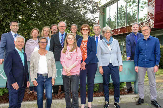 Foto: Schulverweigerung erfolgreich beenden: Familienklasse ist, wenn alle an einem Strang ziehen (v.l.n.r.) Burkhard Schwuchow, Bürgermeister von Büren, Hartmut Bondzio, Schulamtsdirektor, Schulamt für den Kreis Paderborn, Melanie Rieke, Karl Bröcker Stiftung, Dietlind Schäfer, Konrektorin der Krollbachschule, Doris Bernert, Karl Bröcker Stiftung, Jochen Schröder, Sozialarbeiter IN VIA, Landrat Manfred Müller, Yvonne Reclaw, Dr. Oliver Vorndran, Leiter des Bildungs- und Integrationszentrums, Clarissa Rehmann, Konrektorin der Gesamtschule Büren, Rüdiger Bockhorst, Reinhard-Mohn-Stiftung, Petra Hakenberg, Schulaufsicht Gesamtschulen, Michael Berens, Bürgermeister der Gemeinde Hövelhof, Michael Stolpmann, Rektor der Krollbachschule Hövelhof. © Amt für Presse- und Öffentlichkeitsarbeit, Kreis Paderborn, Michaela Pitz.
