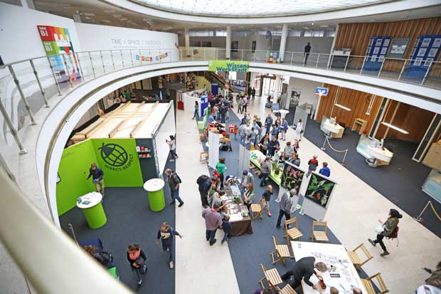 Im Foyer stellt der „Umdenken-Raum“ der Initiative „Insect Respect“ alles auf den Kopf: Tisch und Stuhl sind an der Decke verschraubt, Besucher schlüpfen in die Rolle eines rund um die Deckenleuchte laufenden Insekts. Nebenan erkunden Kinder die Exponate der Ausstellung „Das große Krabbeln“ des Naturkunde-Museums Bielefeld. Im Programm finden sich auch Initiativen wie die „Ravensberger Erfinderwerkstat“, in der Kinder und Jugendliche kleine solarbetriebene Fahrzeuge bauen können, oder der Verein „Hackerspace Bielefeld“, der erste Programmierschritte beibringt.