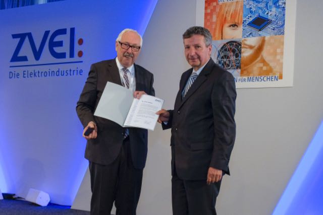 „Die Elektroindustrie stand und steht vor großen Herausforderungen – Es freut mich, dass ich in den letzten Jahren aus dem Vorstand des ZVEI heraus einen Beitrag zur Lösung dieser vielfältigen Themen beitragen konnte“, erklärte Köhler bei der Übergabe. Während seiner Zeit im Vorstand vertrat Köhler mit besonderem Einsatz die Interessen der Elektroindustrie auf internationaler Ebene. Hierbei setzte er sich insbesondere für das Thema Industrie 4.0 und die Unternehmens- und Wirtschaftspolitik in Europa ein. „Europa ist der Heimatmarkt der deutschen Elektroindustrie und als Absatzmarkt von überragender Bedeutung“, so Dr. Klaus Mittelbach, Vorsitzender der ZVEI- Geschäftsführung. „Dr. Köhler ist über viele Jahre hinweg die vernehmbare Stimme unserer Branche in Brüssel gewesen und hat sich dabei große Verdienste erworben.“