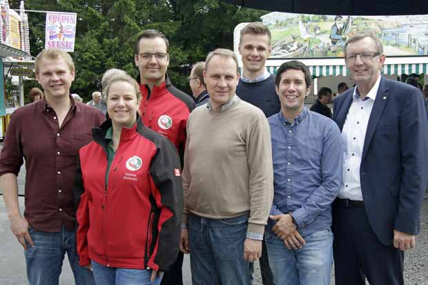 Bild 1: Zogen eine erfreuliche Zwischenbilanz zur Umfrage „Tradition im Wandel“, v. l. n. r.: Student Tobias Sonntag, Susanne Oschecker (BdSJ), Hendrik Hillebrandt (BdSJ), Dr. Peter Becker von der Universität Paderborn, Student Jonas Leineweber, Benjamin Payer (Field Marketing Manager der Warsteiner Brauerei) und Manfred Nieder (Verkaufsdirektor der Warsteiner Brauerei) © Warsteiner Brauerei